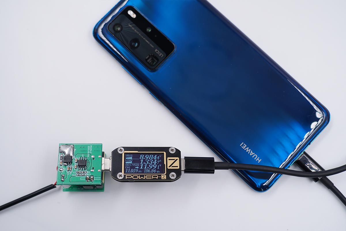 為華為 P40 Pro手機充電,電壓8.98V,電流1.33A,充電功率約為12W,進入USB PD快充。