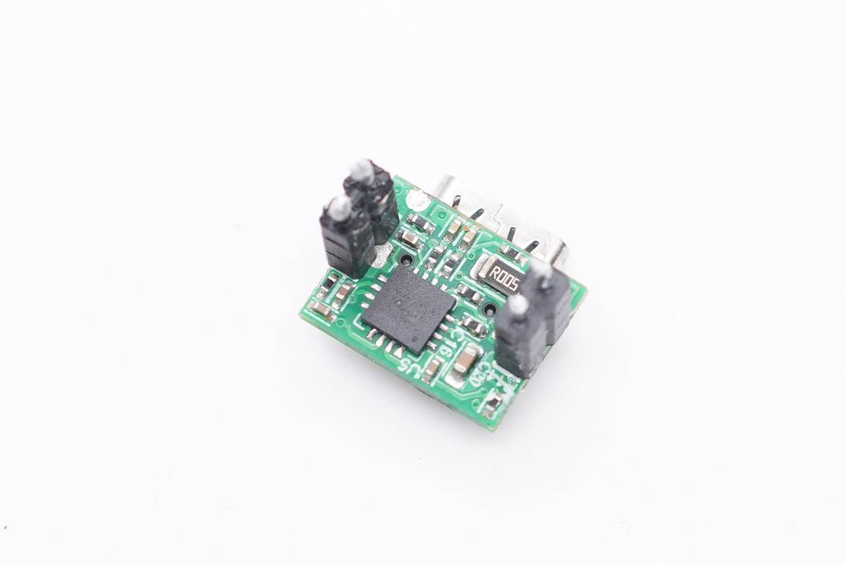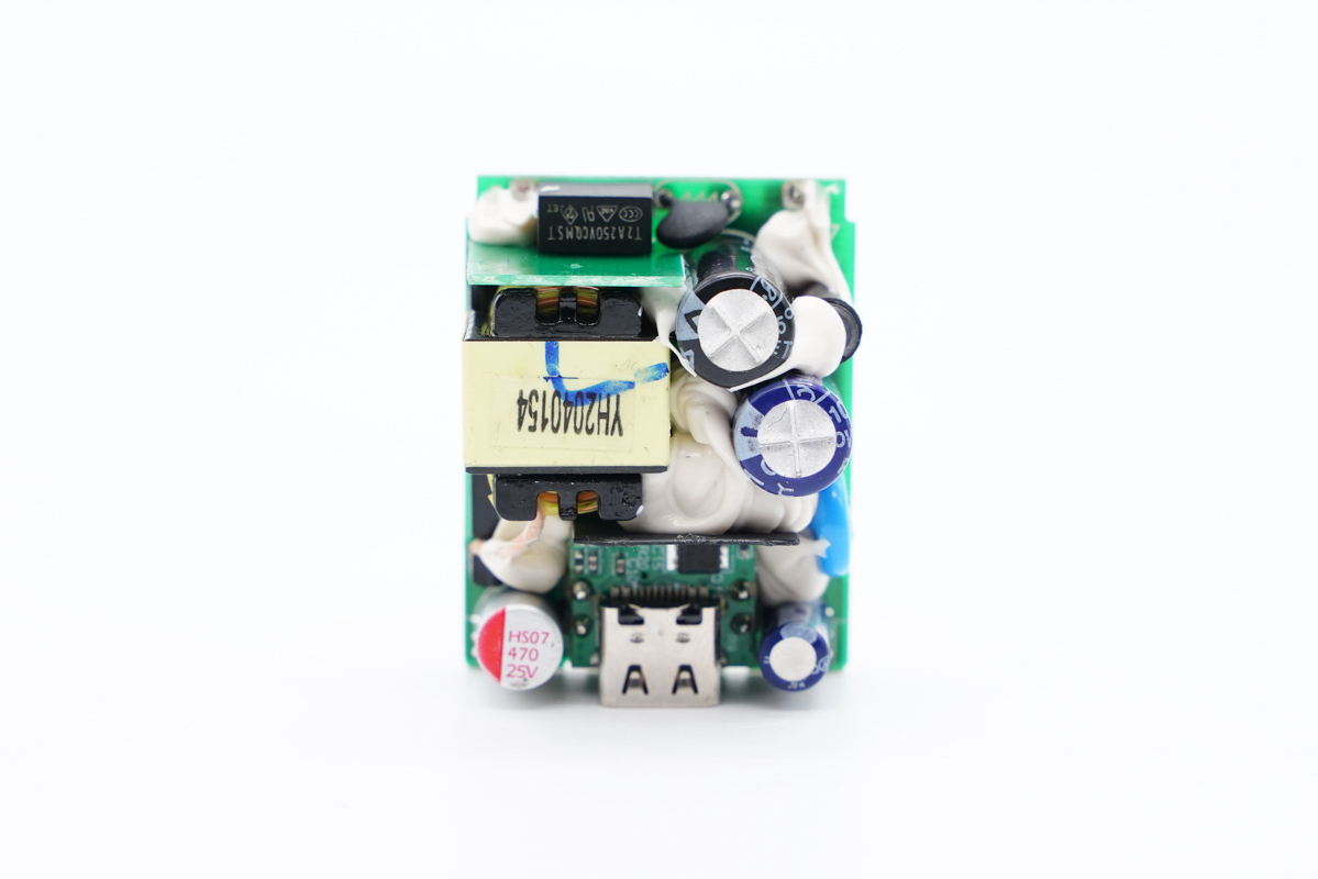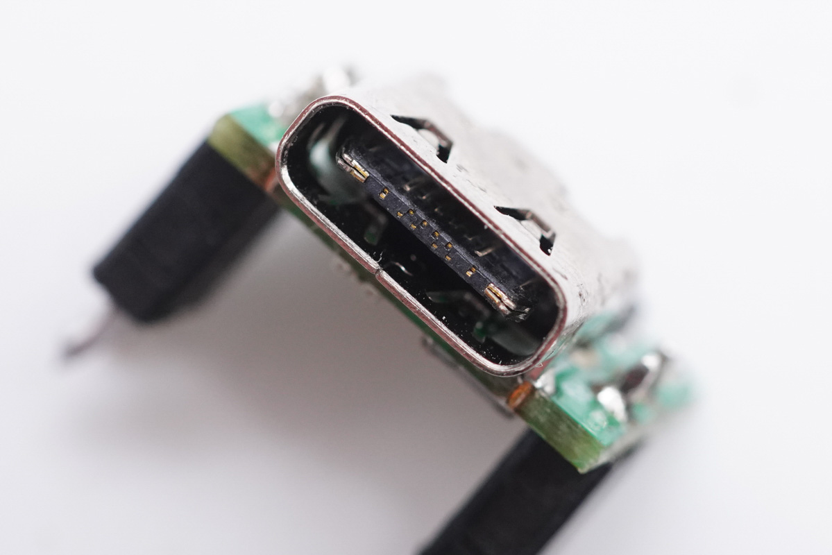 輸出端一覽,USB-C母座使用小板焊接,兩側各有一顆濾波電容。