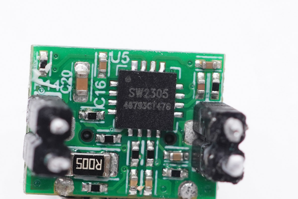 USB PD協議芯片采用智融SW2305。這是一款高集成度的Type-C口/Type-A口快充協議芯片,支持 PD、QC、FCP、高低壓SCP、 AFC、SFCP、VOOC以及PE等主流快充協議,支持光耦反饋和FB 反饋兩種工作模式。