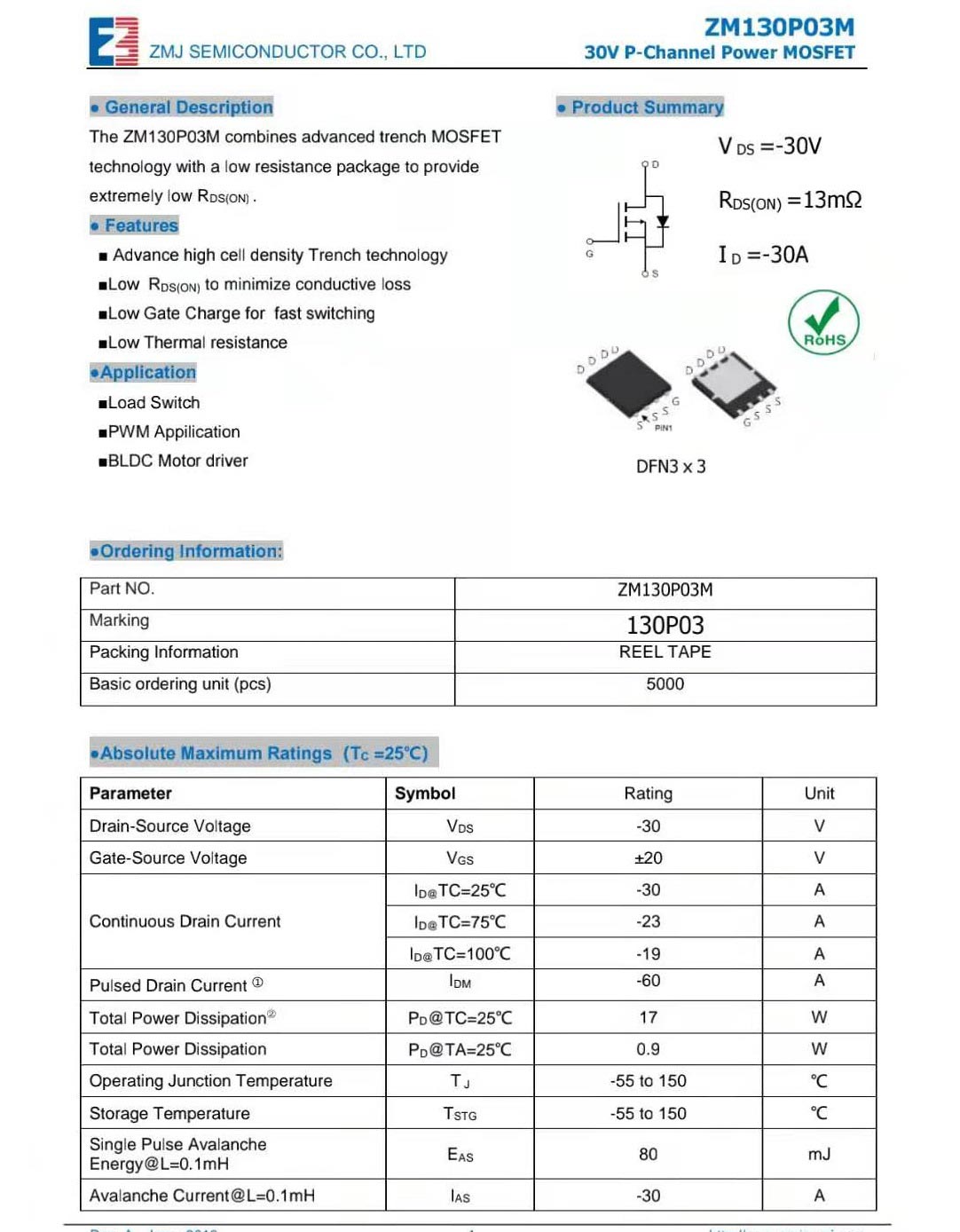 輸出VBUS開關管采用真茂佳ZM130P03M,PMOS,耐壓30V,導阻13mΩ。