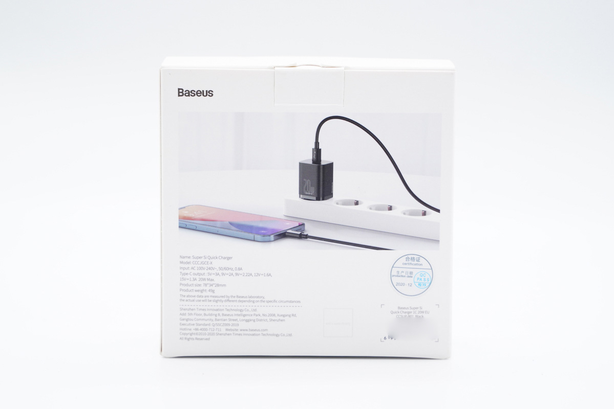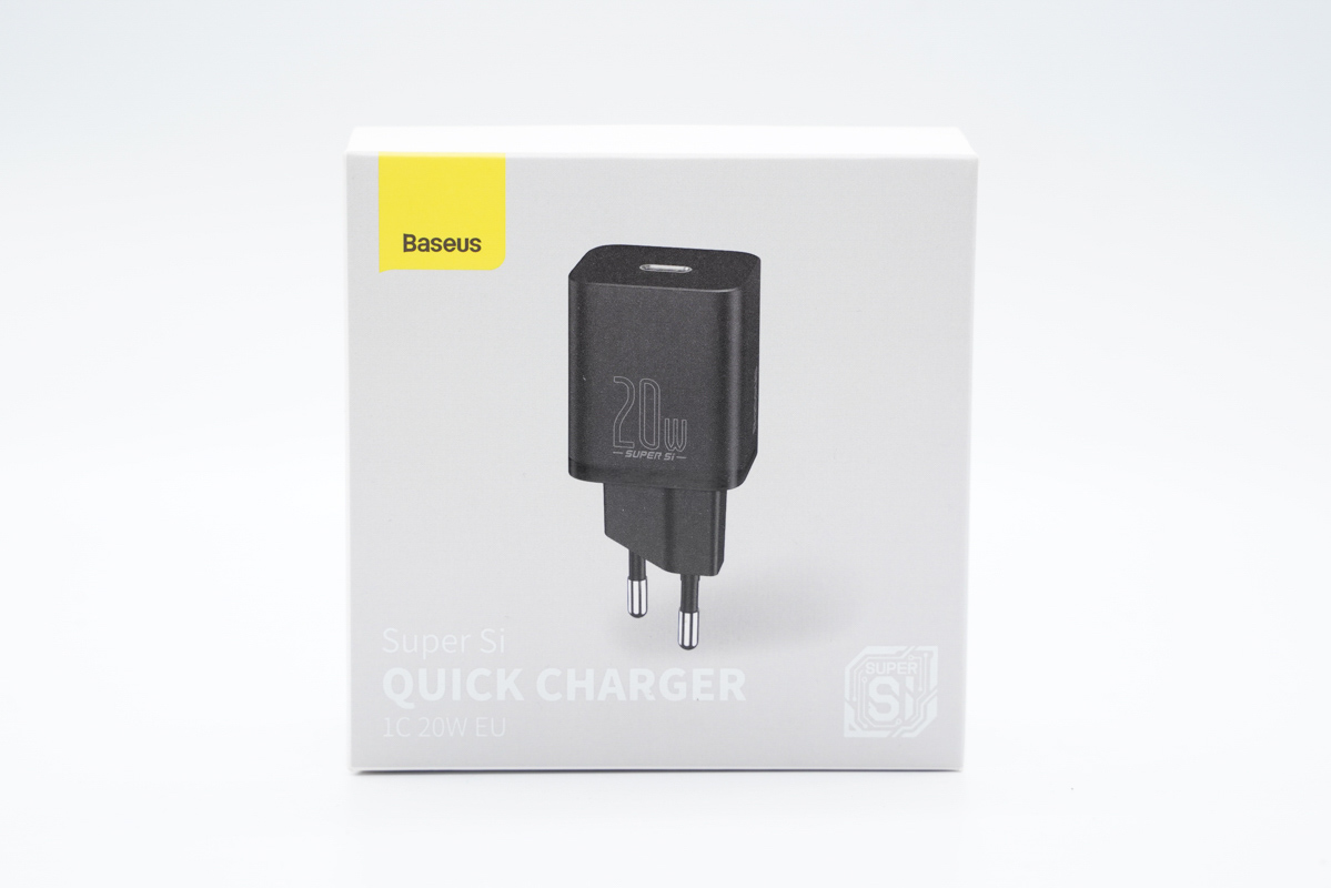 包裝盒左上角是倍思經典的黃色品牌設計,另外印有充電器外觀圖以及Super Si等特性標識。