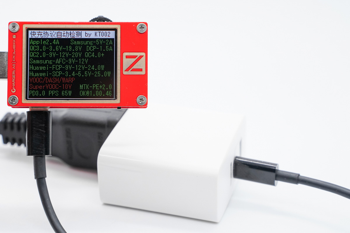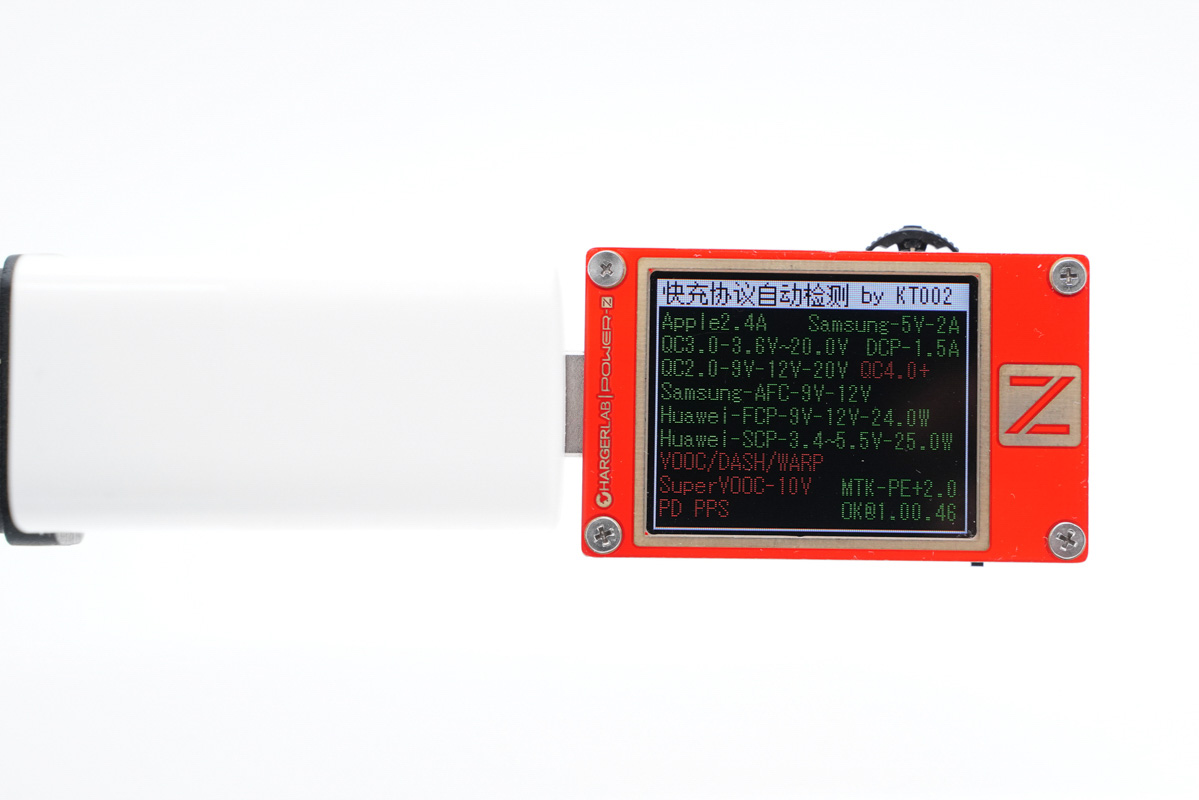 另外使用KT002檢測USB-C口的輸出協議,除包含A口支持的所有協議外,還額外支持PD3.0、PPS快充協議。