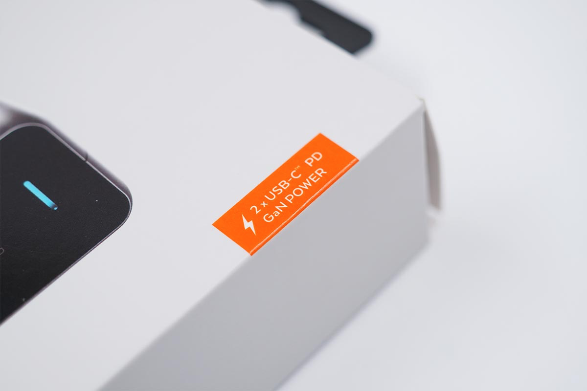邊角處的標識說明了充電器采用了GaN氮化鎵元器件。