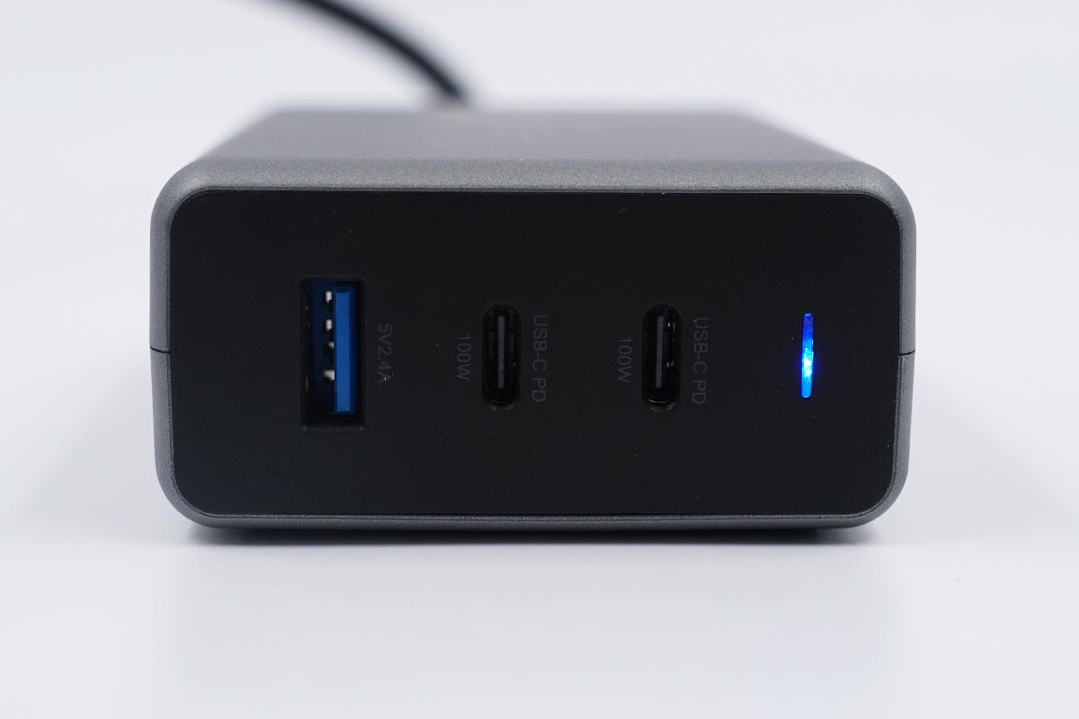 USB-C接口的右側帶有電源指示燈,當充電器連接插座之后指示燈亮起,方便用戶判斷當前充電器的狀態。