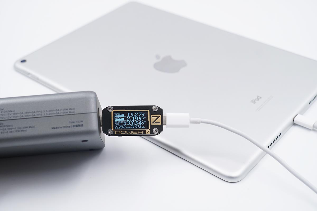 iPad Air 3支持Apple2.4A/USB PD快充協議,使用USB-C1為iPad Air 3充電,功率為15.27V 2.19A 33.54W。