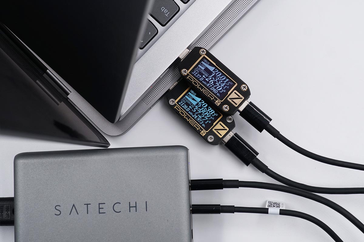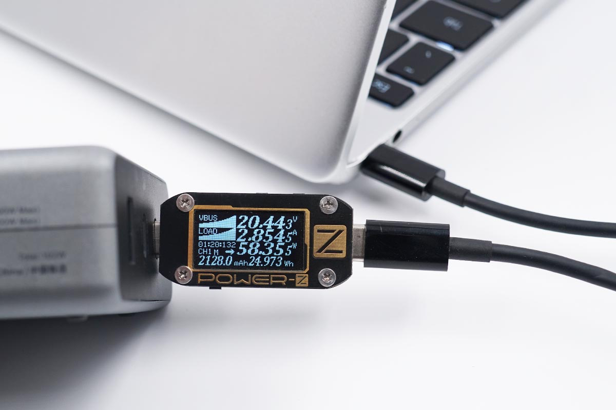 華為Matebook僅支持USB PD快充協議,使用USB-C1為華為Matebook充電,功率為20.44V 2.85A 58.35W。