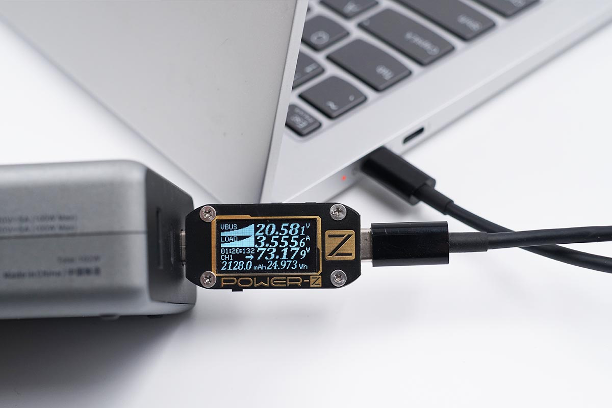 聯想小新Pro 14 2021僅支持USB PD快充協議,使用USB-C1為聯想小新Pro 14 2021充電,功率為20.58V 3.55A 73.17W。