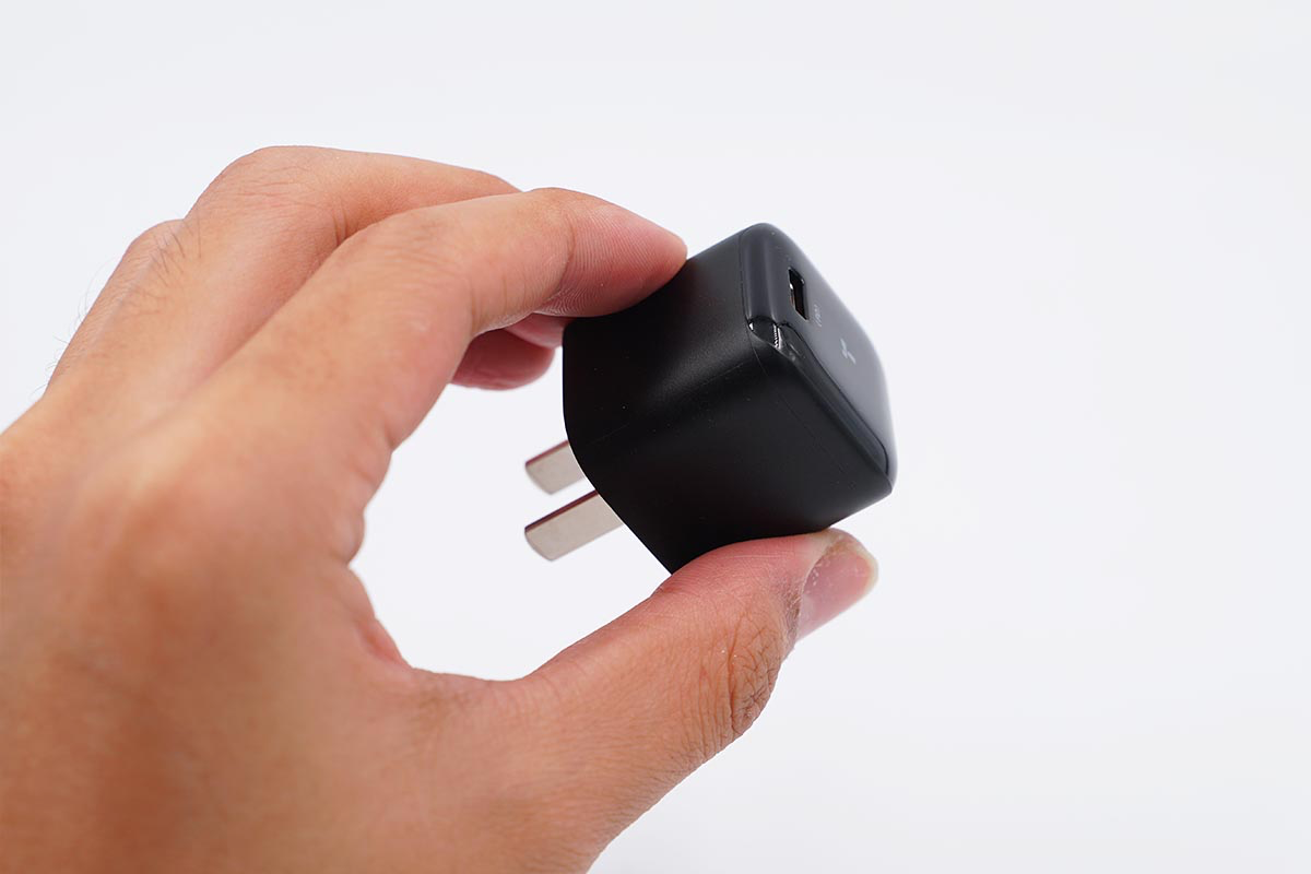 剛開箱這款產品的時候就可以看出非常小巧,整個充電器雖均為黑色的配色,但殼體四周為磨砂黑,而接口的一面被設計成了亮黑色。
