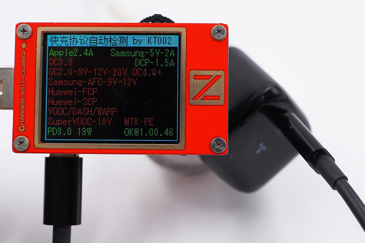 使用POWER-Z KT002讀取充電器的快充協議,實測支持Apple2.4A和PD快充協議。