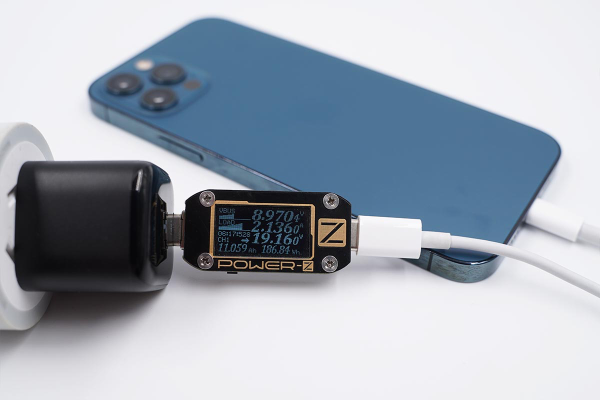 iPhone 12 Pro支持Apple2.4A/PD快充協議,使用充電器為iPhone 12 Pro充電,功率為8.97V 2.13A 19.16W,成功觸發(fā)PD快充。