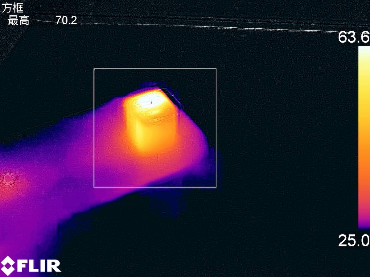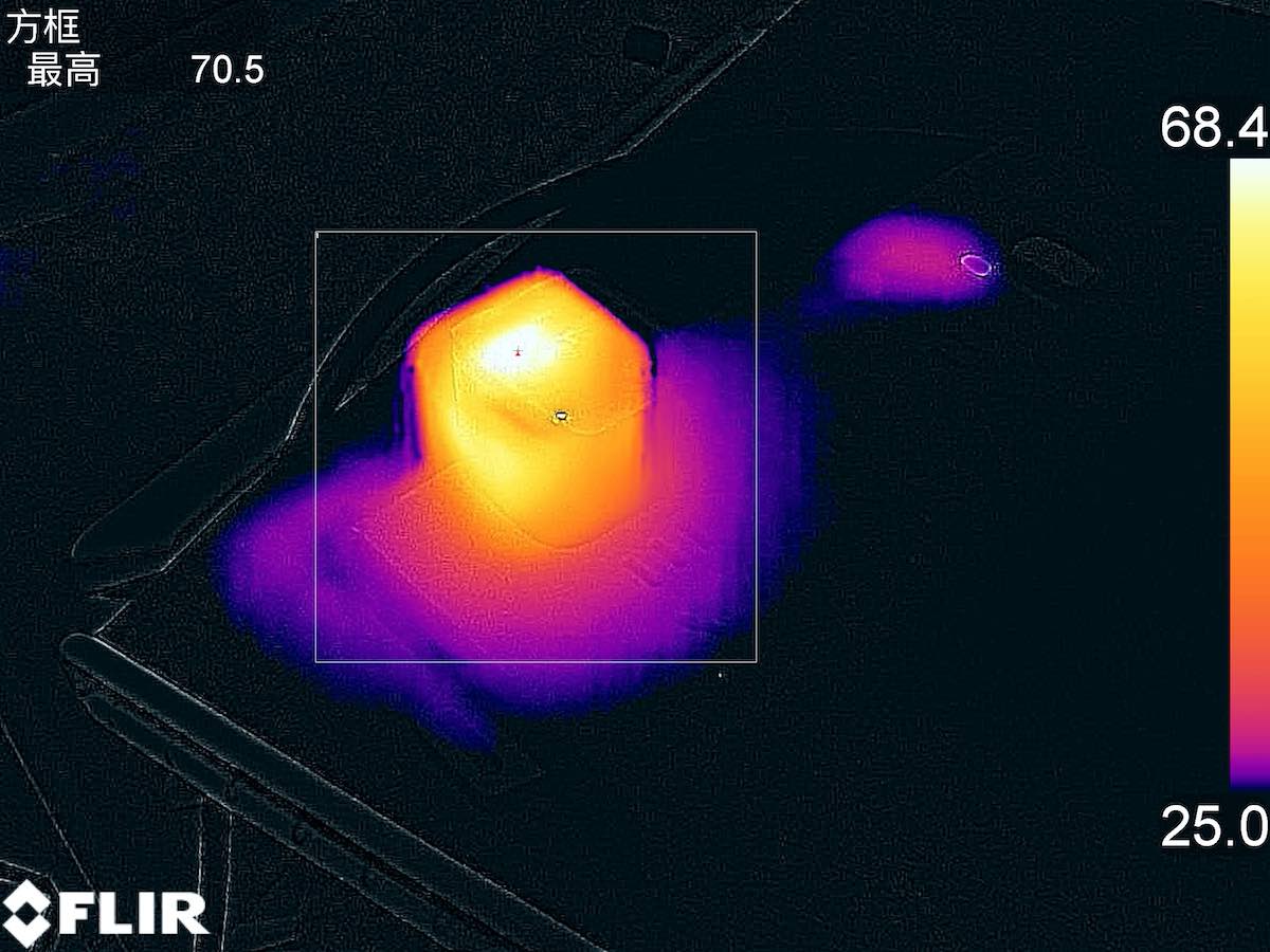 以20W的功率持續(xù)輸出1小時后采集到充電器的最高溫度為70.5℃。