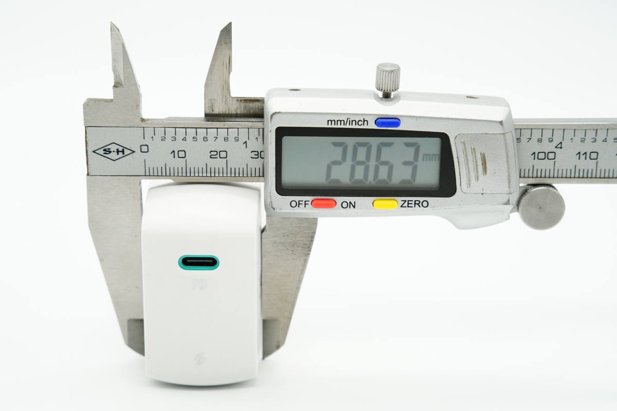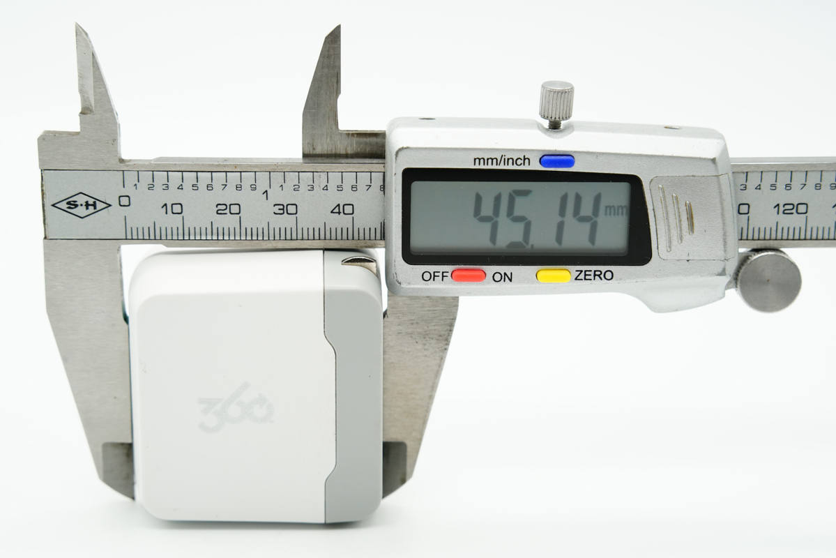 使用游標卡尺實測充電器機身高度為45.14mm。