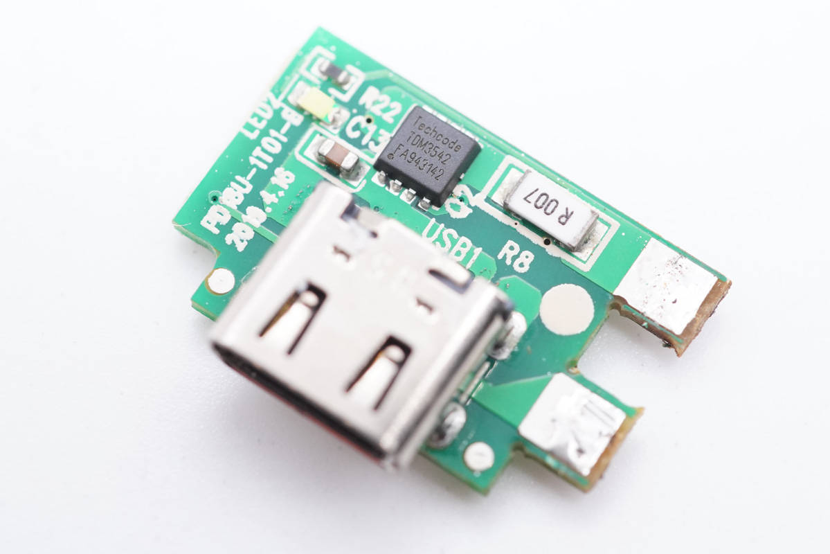 將小板拆下,正面設有LED指示燈、輸出VBUS開關管和USB母座。