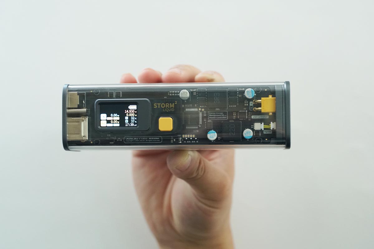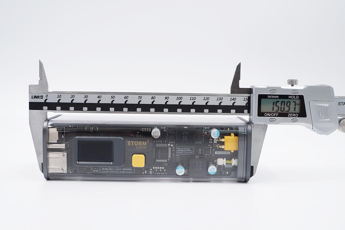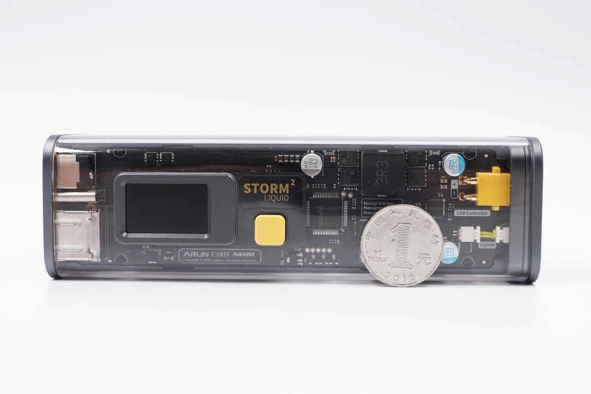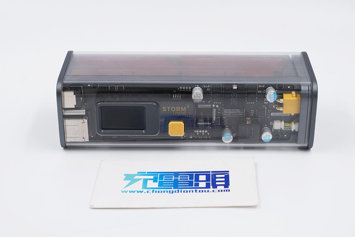首先從外觀設計來講STORM 2 EDC移動電源就很與眾不同,滿滿的賽博朋克風格,整個充電寶的殼體采用透明的設計,從外面就可以直接看到內部的硬件構造,PC電路板、電芯、芯片、電容一目了然,極具個性風格。