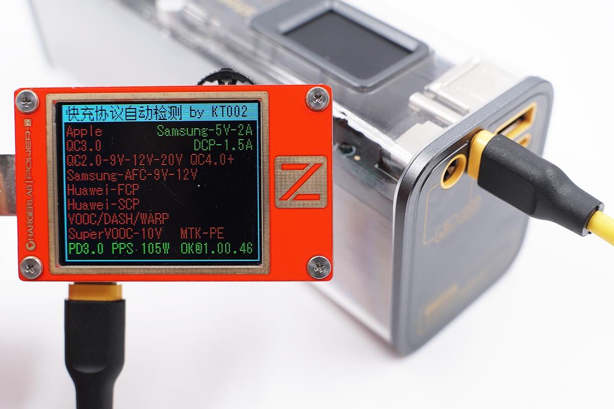 接口配置上充電寶自帶2C1A共3個USB接口以及一個DC接口,充電寶支持PD、PPS、Apple2.4A、QC2.0、QC3.0、QC4+、AFC、FCP、SCP、MTK-PE快充協議。支持5V3A、9V3A、12V3A、15V3A、20V5A五個固定電壓檔位以及3-21V 5A一組PPS檔位。