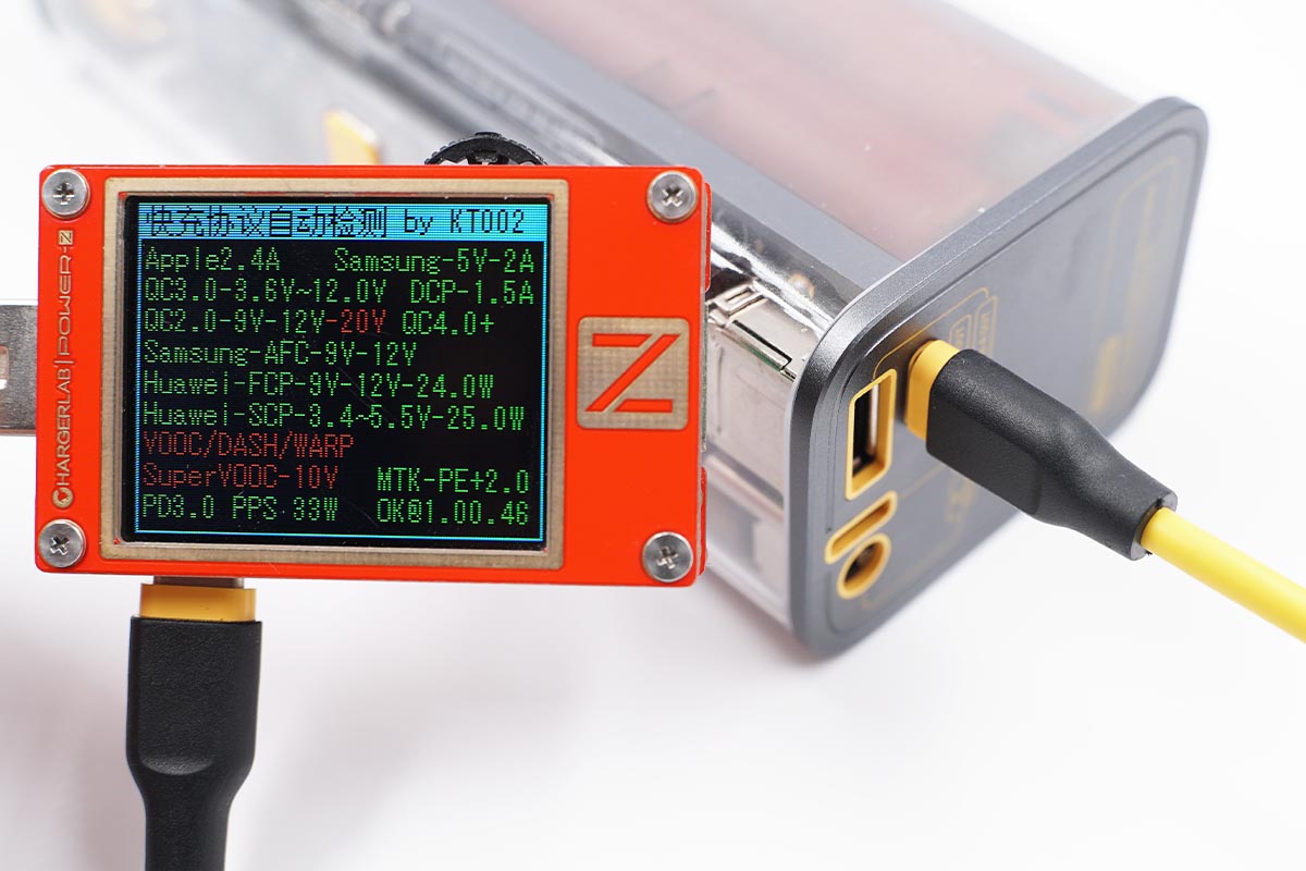 使用POWER-Z KT002讀取USB-C1的快充協議,實測支持PD和PPS快充協議。