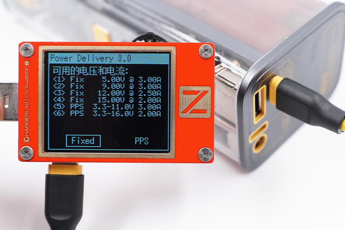 讀取USB-C1的PDO報文,支持5V3A、9V3A、12V3A、15V3A、20V5A五個固定電壓檔位以及3-21V 5A一組PPS檔位。