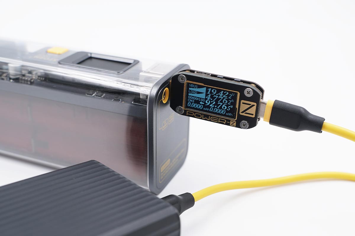 STORM 2 EDC充電寶支持100W的自充功率,實測使用100W PD充電器為充電寶充電時功率可以達到19.72V 4.77A 92.76W。