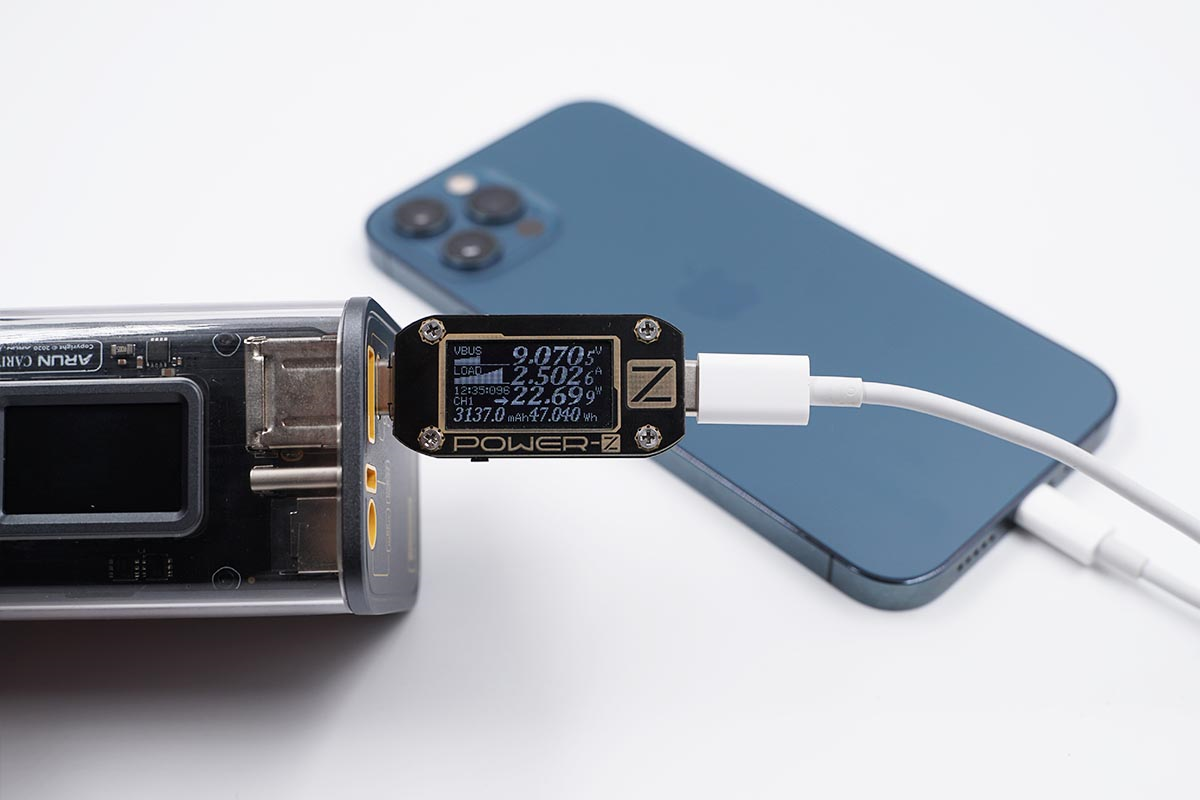 iPhone 12 Pro支持PD/Apple2.4A快充協議,使用USB-C2為iPhone 12 Pro充電,功率為9.07V 2.50A 22.69W。