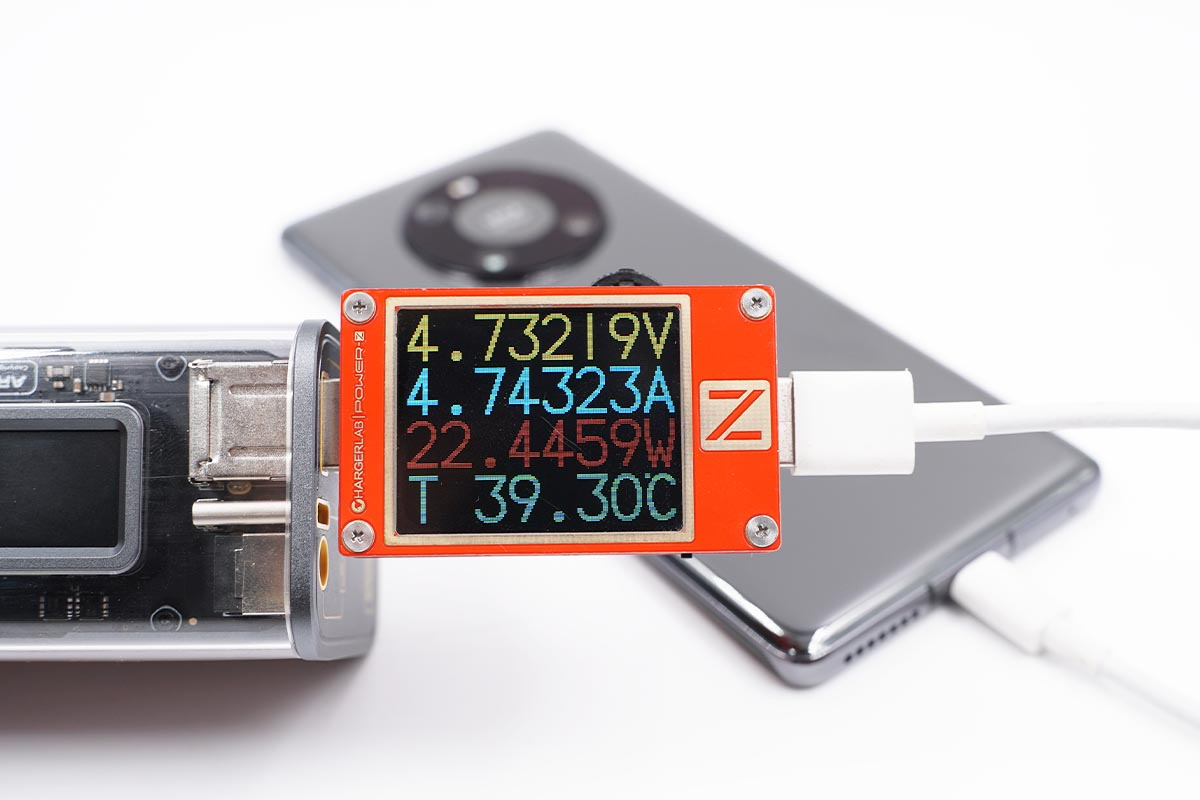 華為Mate40 Pro支持SCP/FCP/PD快充協議,使用USB-A為華為Mate40 Pro充電,功率為4.73V 4.74A 22.44W,此時處于SCP快充狀態。