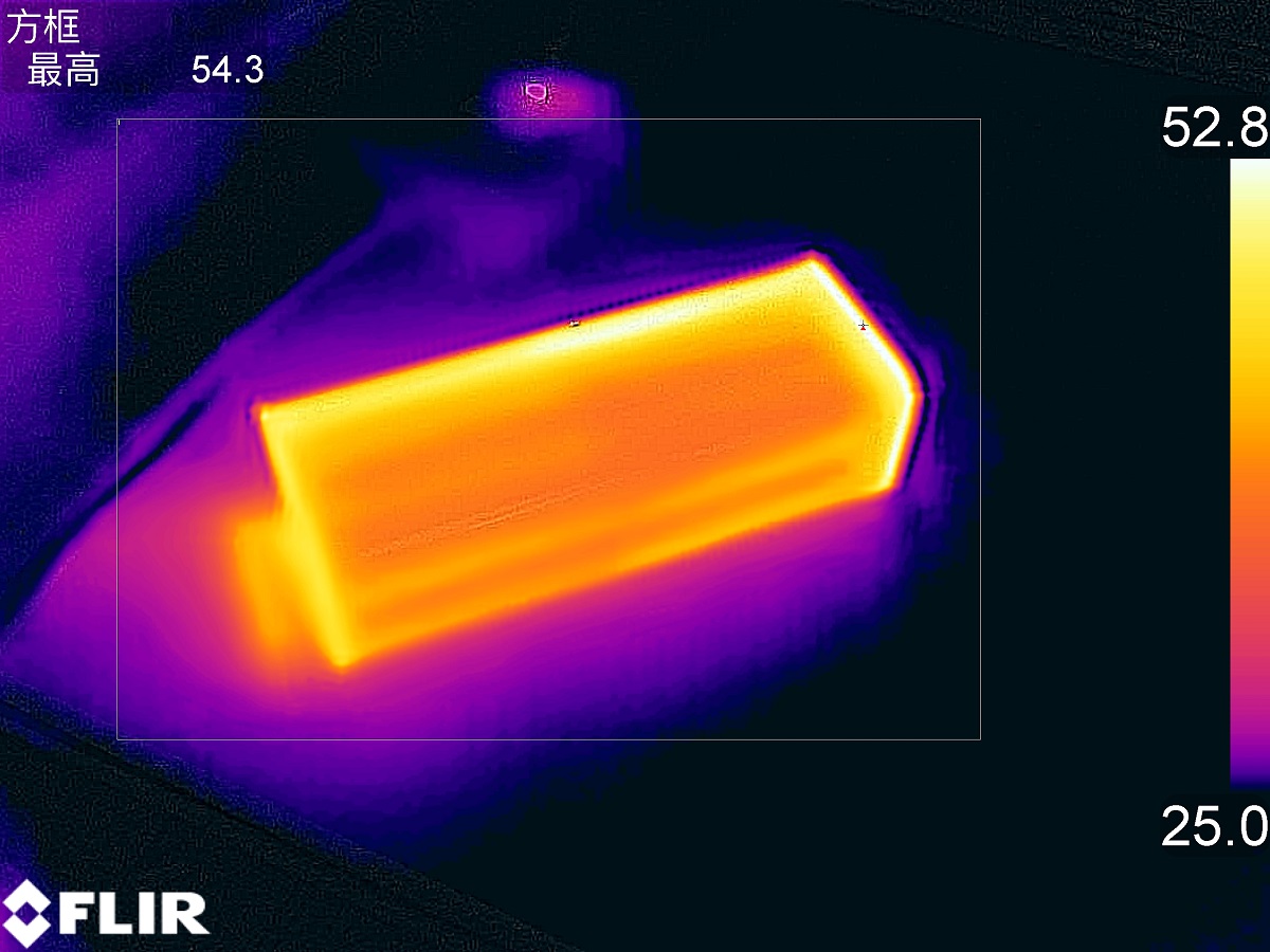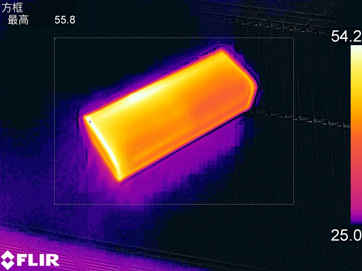 充電寶以100W的功率持續輸出半小時后采集到充電寶表面最高溫度為55.8℃。