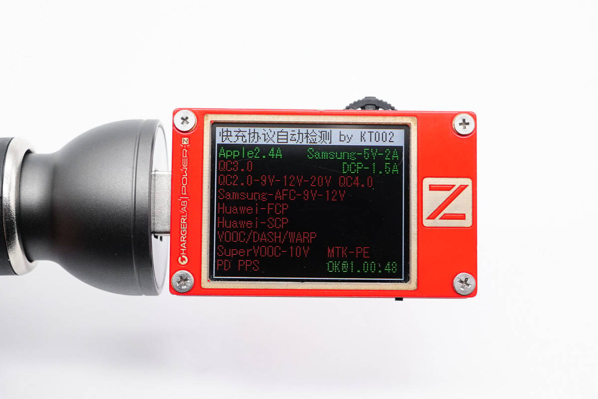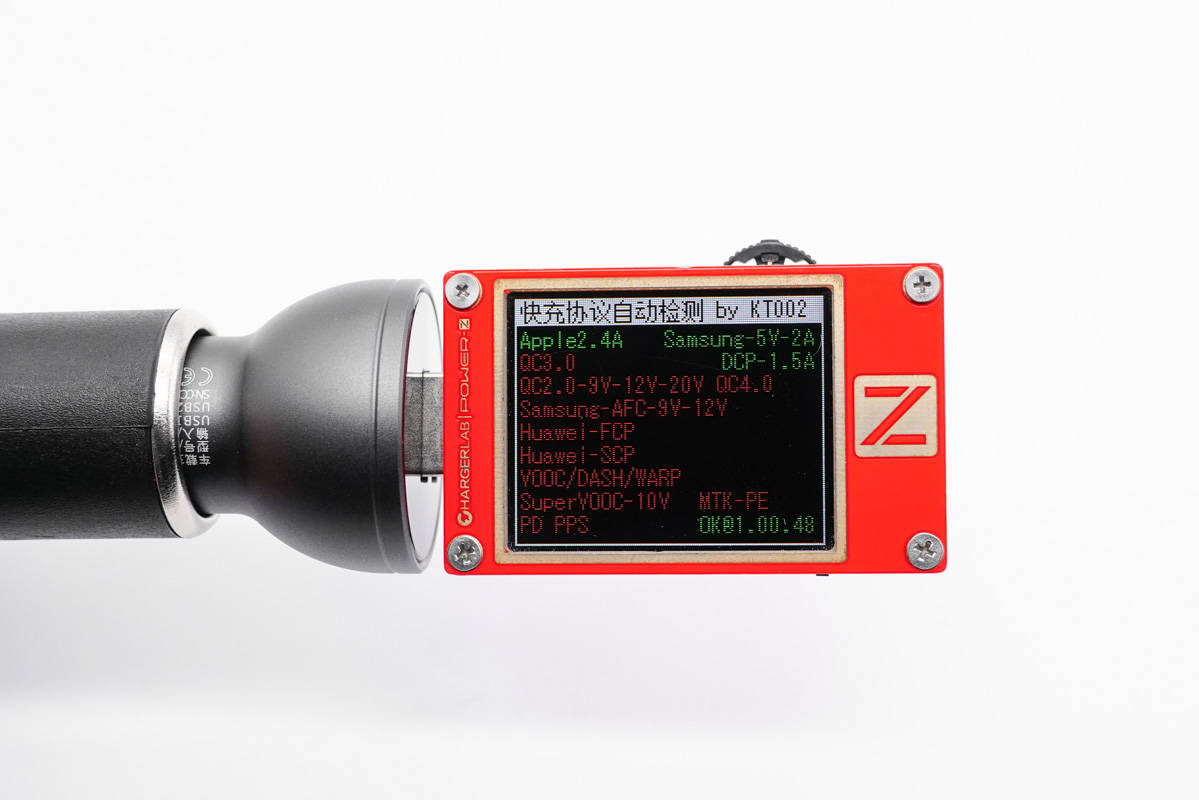 使用ChargerLAB POWER-Z KT002測得USB-A1口支持Apple 2.4A、Samsung 5V2A和DCP協議。