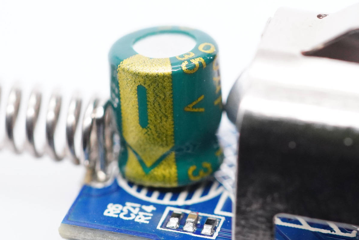 輸入濾波電解電容特寫,規格為35V 100μF。