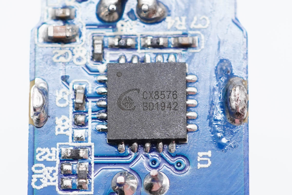 充電頭網通過拆解了解到,這款車充內置誠芯微CX8576降壓轉換器,用于雙A口降壓輸出,另外同樣采用來自誠芯微的CX2901A,用于雙A口充電協議識別,控制輸出電壓。車充設有輸出濾波電容,顯示屏有塑料支撐固定,采用誠芯微CX2811驅動,整體設計講究。