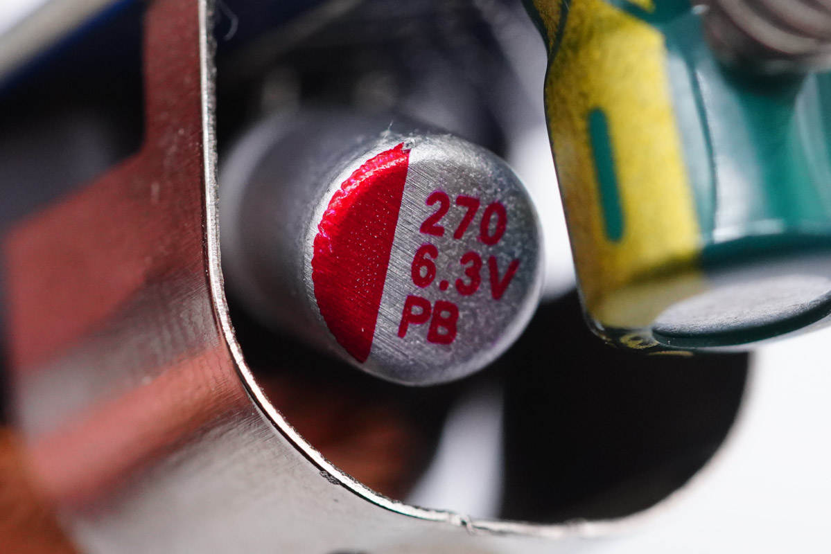 降壓輸出濾波固態電容特寫,規格為6.3V 270μF。