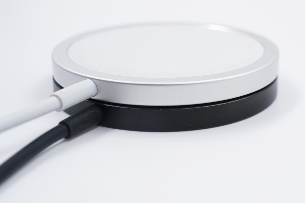 mophie的這款磁吸無線充電器在外觀的設計上和蘋果MagSafe無線充電器如出一轍,在配色上和蘋果剛好相反。mophie磁吸無線充電器采用鋁制外殼加上硅膠材質的無線充電面板設計,無線充電面板略高于四周鋁制外殼可以防止劃傷手機背板。