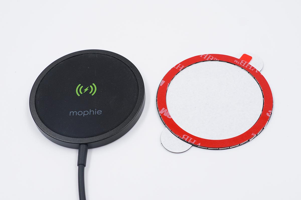 包裝盒內除了mophie MagSafe磁吸無線充電器之外,額外還配備了一個磁吸線圈,這樣就可以讓其他自身不帶磁鐵的手機也可以相同磁吸充電體驗了。