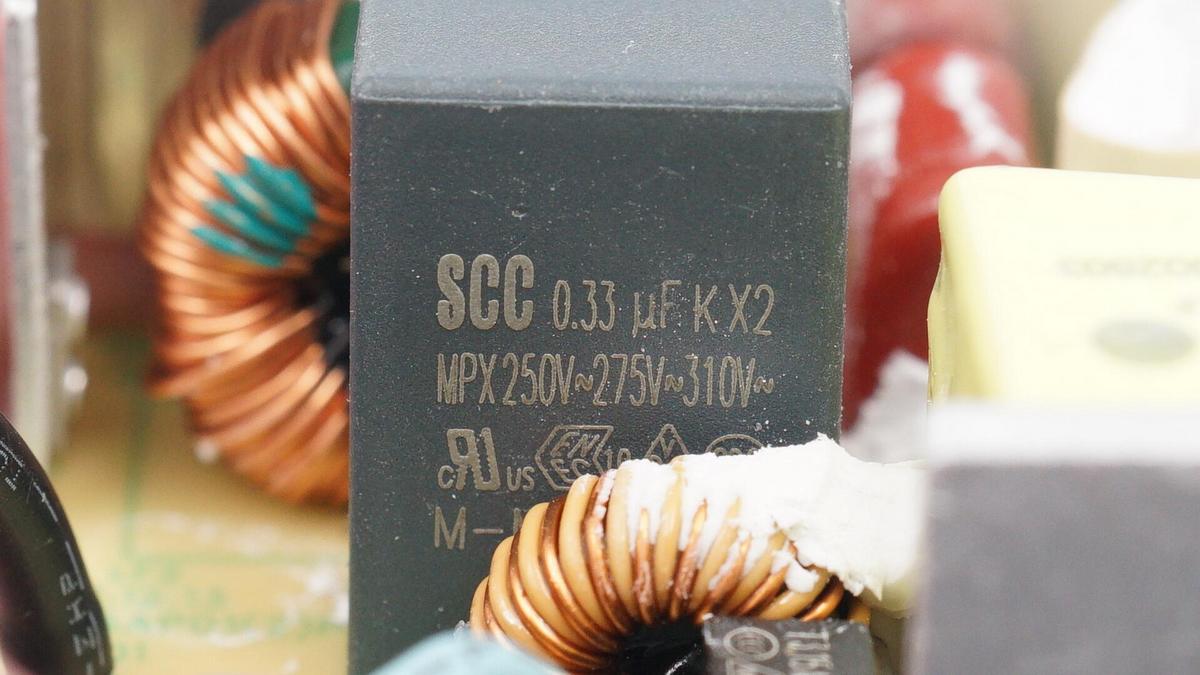 導線旁邊設有延時保險絲、共模電感和X電容。