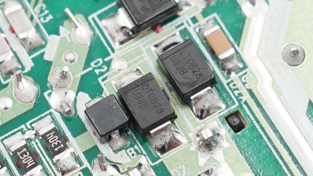 絲印U3JB的超快恢復二極管,MURS360,3A600V耐壓,兩顆并聯用于APFC升壓整流。