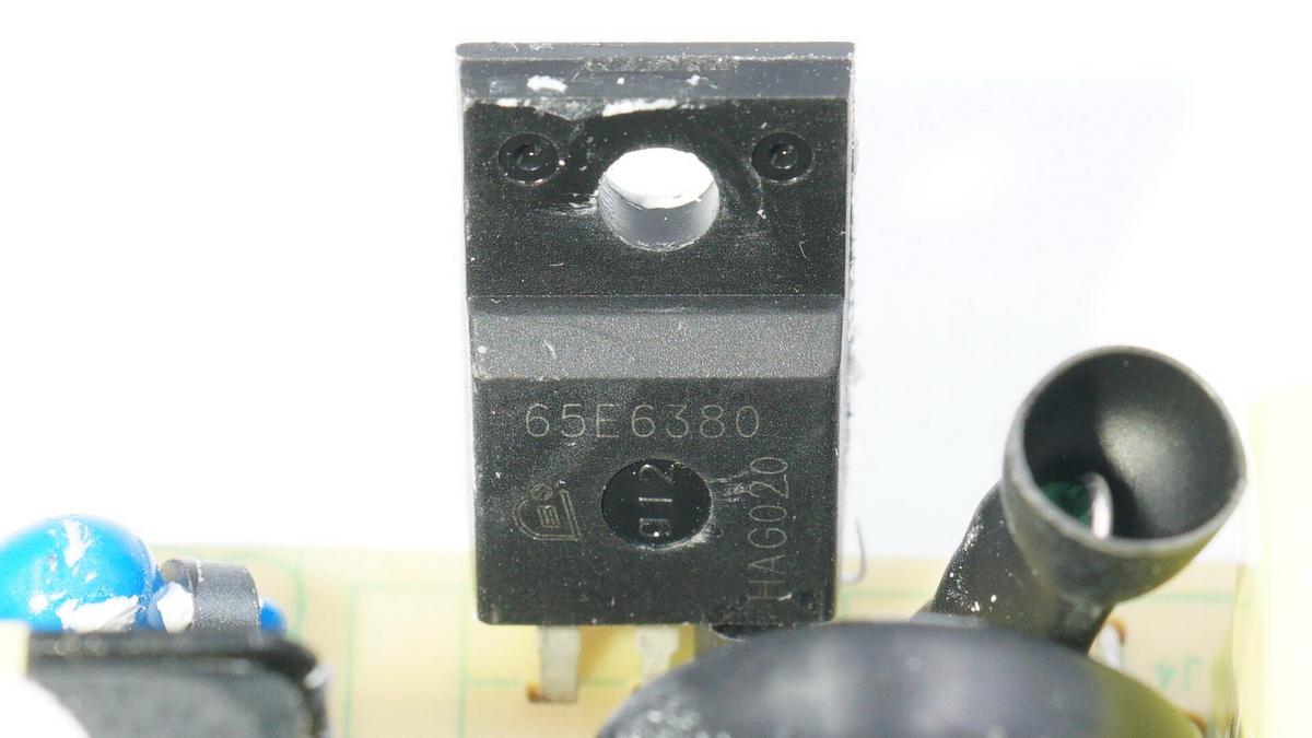 初級開關MOS管也是來自英飛凌,IPP65R380E6,耐壓700V,導阻0.38Ω。