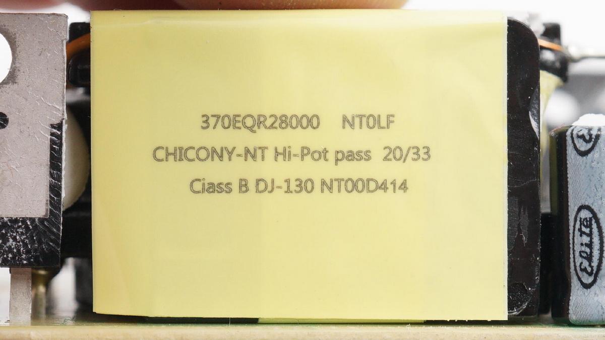 充電頭網通過拆解發現,充電器AC-DC部分,由安森美NCP1937組合控制器搭配英飛凌MOS,以及芯源半導體MP6908搭配富鼎同步整流管組成帶APFC的同步整流開關電源。輸出電壓由偉詮WT6636F控制。輸入輸出濾波電容來自臺灣金山,整體用料非常扎實。