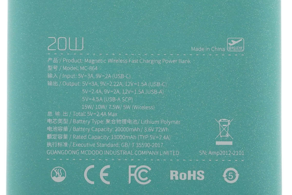 麥多多20000mAh磁吸無(wú)線充移動(dòng)電源機(jī)身扁平邊角圓潤(rùn),配備LED顯示屏,附帶CC短線都方便用戶進(jìn)行使用。1A1C接口支持QC、AFC、FCP、SCP、PE、PD3.0和PPS快充協(xié)議,整體兼容性很好,不僅可以滿足iPhone 12磁吸無(wú)線充電或有線20W快充,拿來(lái)給小米、華為等品牌手機(jī)充電速度也很快。