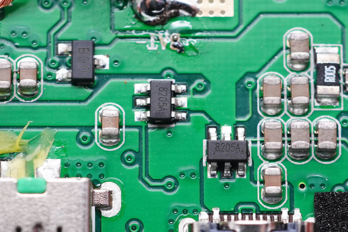 兩顆8205A MOS管,分別用于1A1C接口輸入輸出保護(hù)。