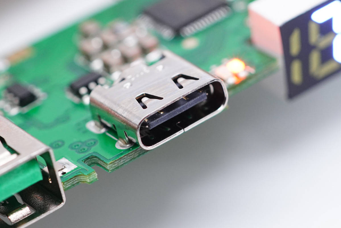 USB-C母座特寫(xiě)。