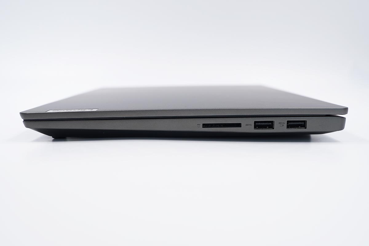 充電頭網評測室最新購入的這臺聯想小新Air銳龍版B面的屏幕大小為14英寸,接口配置上筆電配備了2個支持USB3.2 Gen1 的USB-A接口、1個全尺寸TF卡接口、1個全功能USB-C接口、HDMI接口以及3.5mm耳機麥克風接口。