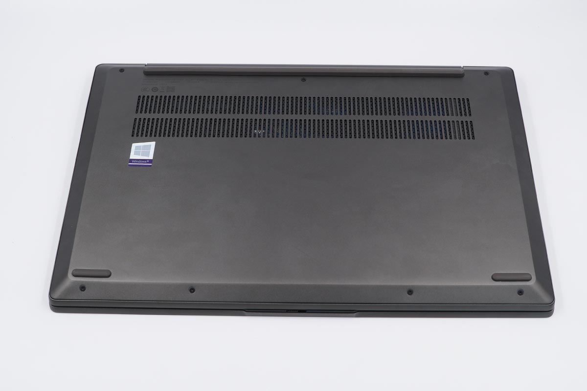 筆電的D面,上半部分為風扇散熱區域,轉折處留有增高墊有助于機身散熱。