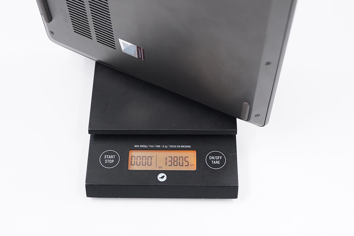 整個筆電的重量約為1380.5g,大約2斤多的重量。