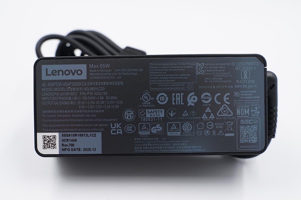 附帶的充電器支持最高65W的輸出功率。