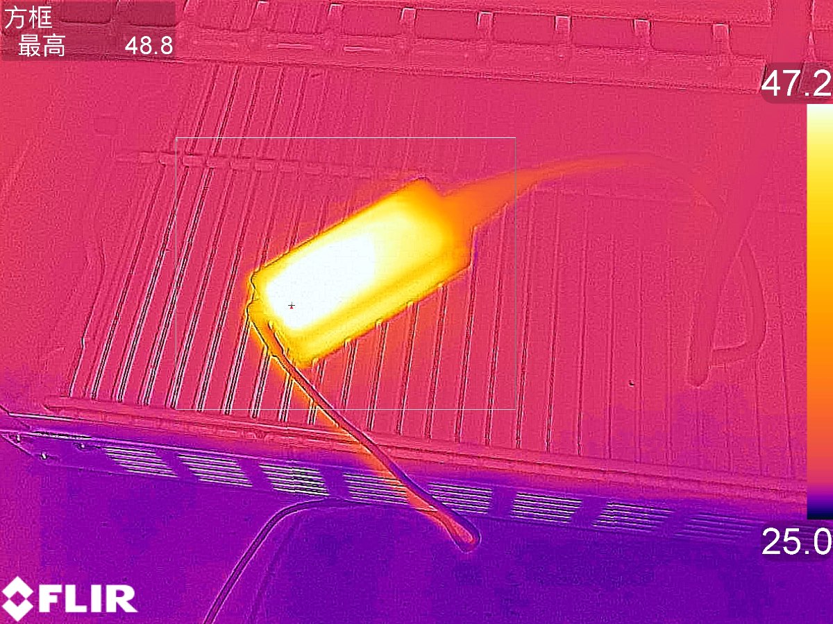 在充電器持續運行1小時40分后采集到充電器表面最高溫度為48.8℃。
