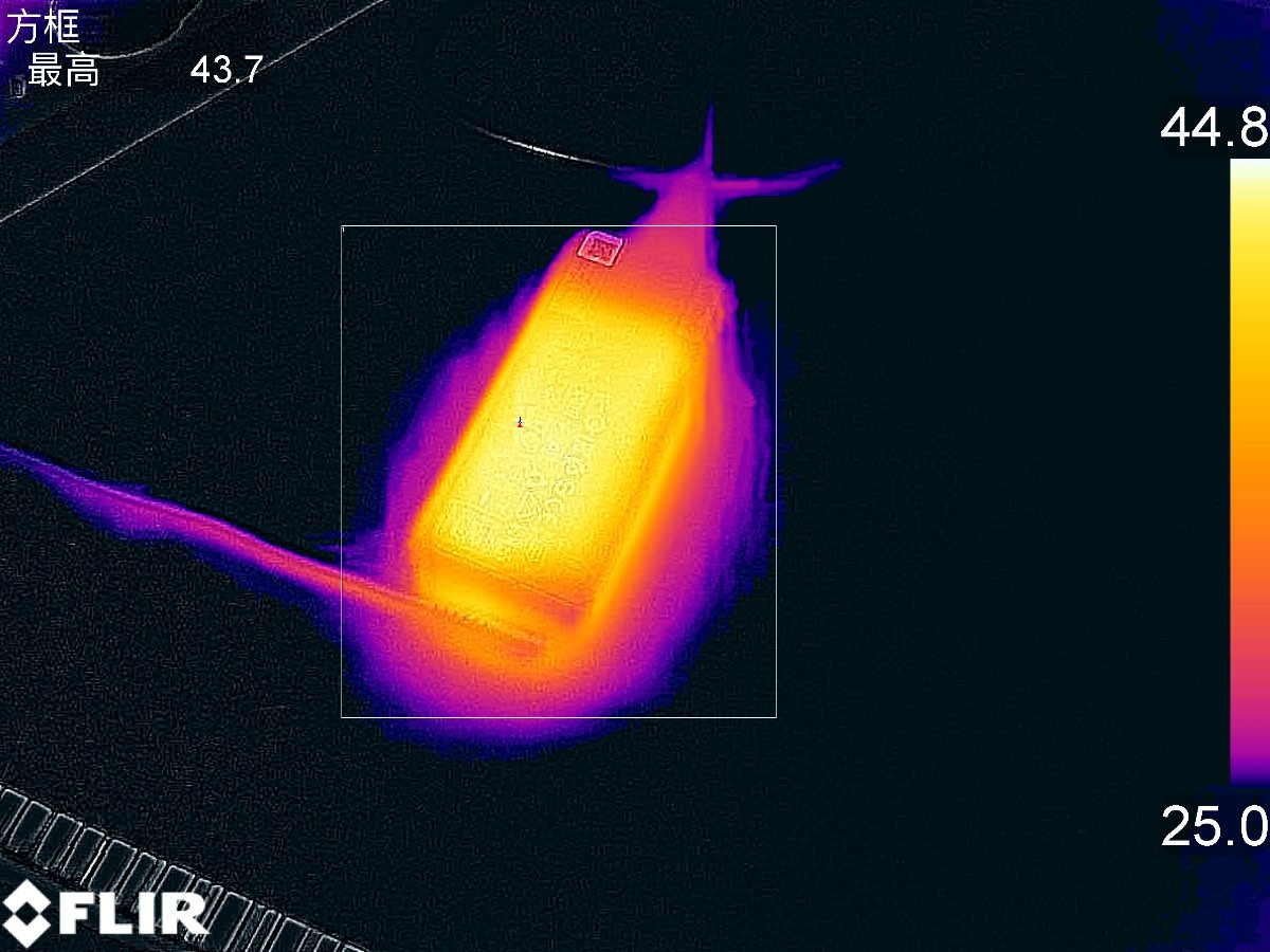 翻轉至另一側,充電器表面最高溫度為43.7℃。