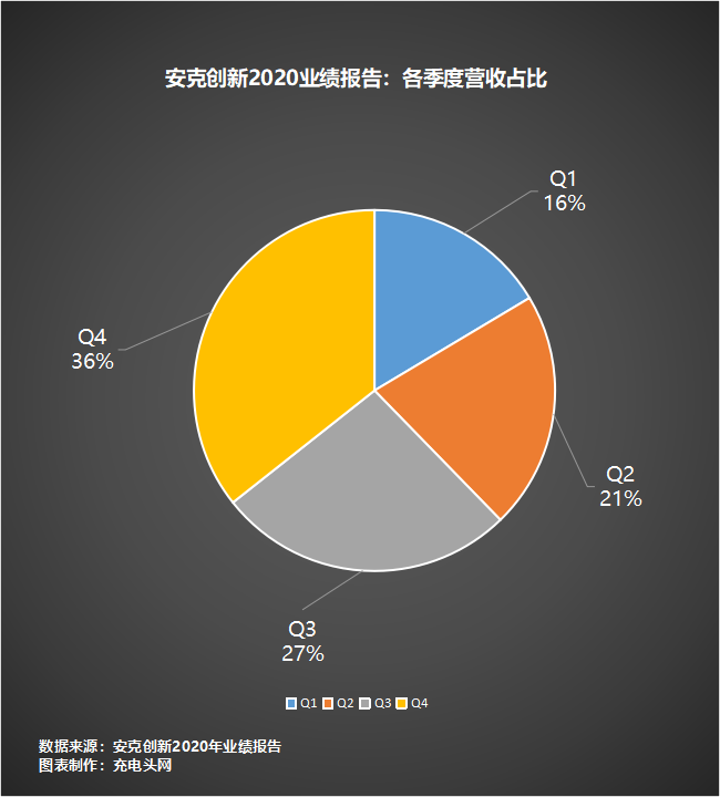值得注意的是,2020年第四季度營收為33.34,同比增長為45.47%,占整年營收比例超過三分之一,遠(yuǎn)超前三季度。換個角度看,2020年第四季度的安克營收水平接近2017年安克整年的營收水準(zhǔn)。