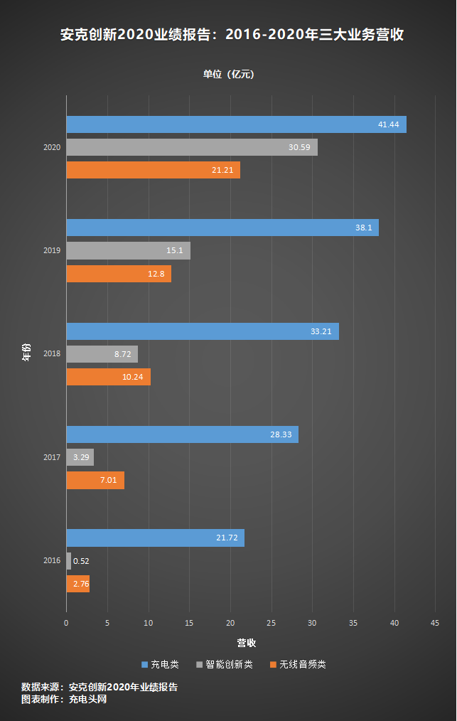其中,安克的充電類產(chǎn)品主要為“Anker”品牌的移動電源、充電器、充電線、拓展塢、帶線多位插座等系列產(chǎn)品。由于疫情影響差旅需求大幅下降,移動電源業(yè)務(wù)收入有所降低。