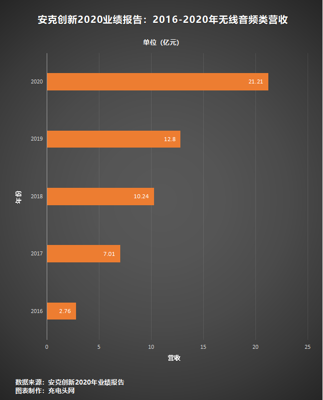無線音頻類產(chǎn)品2020年營收21.21億元,與2019年相比增長65.78%,與2018年相比實現(xiàn)翻倍。