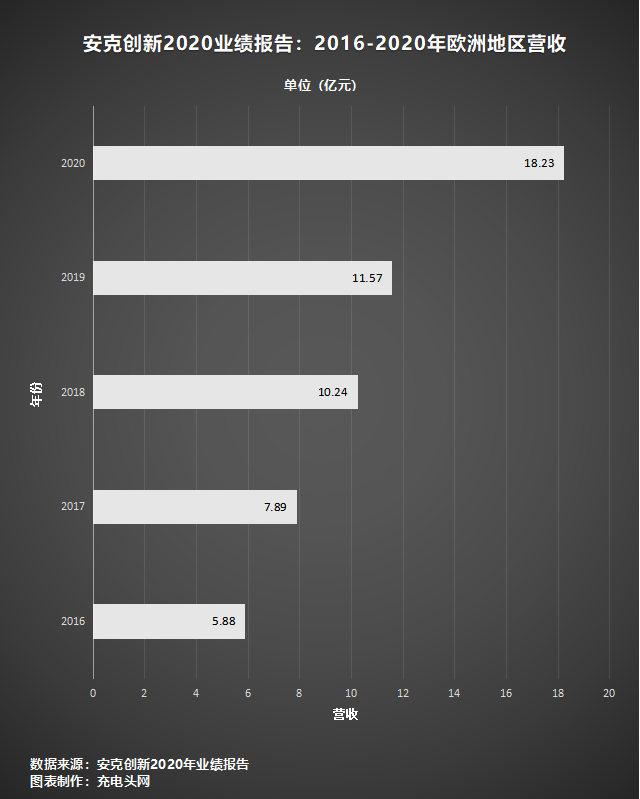 歐洲市場既統(tǒng)一又分散,線上銷售普及化程度相對不高。安克在歐洲地區(qū)以本土化運營為主,2016年營收5.88億,到了2020年已經(jīng)增長到18.23億,速度穩(wěn)定,前景廣闊。
