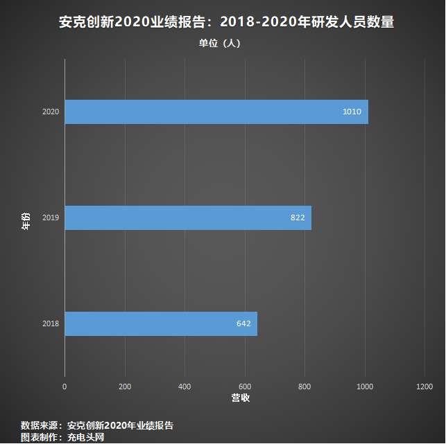 安克研發(fā)投入的重點在研發(fā)技術(shù)人員和專利兩大方面。截至2020年底,公司共有研發(fā)人員1010名,占總?cè)藬?shù)的47.11%,專業(yè)能力較強且呈現(xiàn)年輕化的特點,為安克業(yè)務(wù)持續(xù)發(fā)展提供重要基礎(chǔ)與核心源動力。