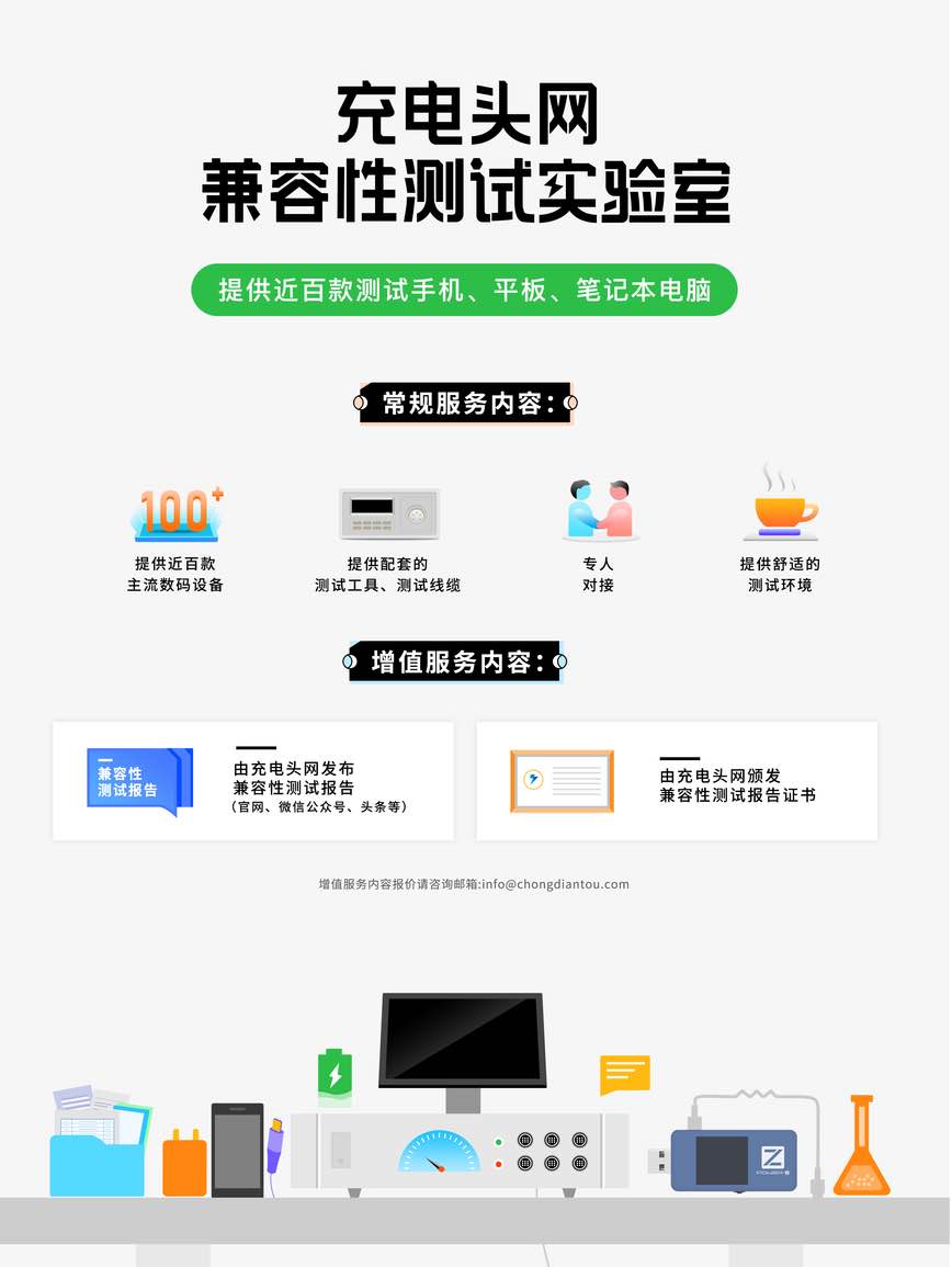 目前充電頭網評測室共有近百款硬件設備,企業如需兼容性測試 可以聯系 info@chongdiantou.com 了解服務詳情。